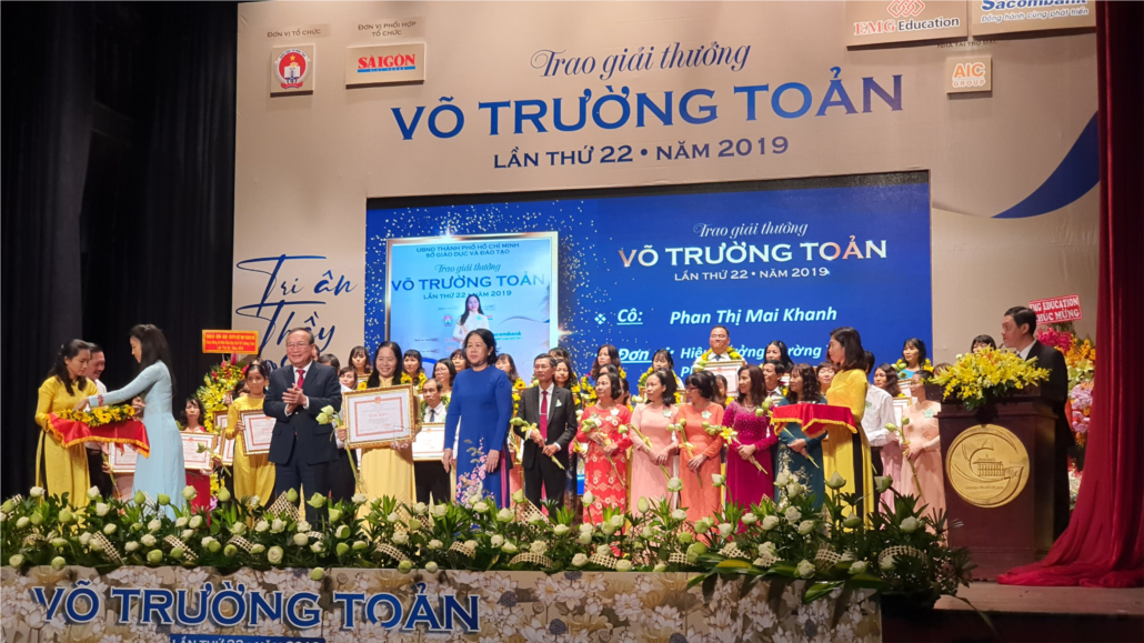 Cô Phan Thị Mai Khanh – Hiệu trưởng trường THCS Phú Định quận 6. Một trong 50 nhà giáo tiêu biểu của Thành phố Hồ Chí Minh được vinh danh Giải thưởng Võ Trường Toản.