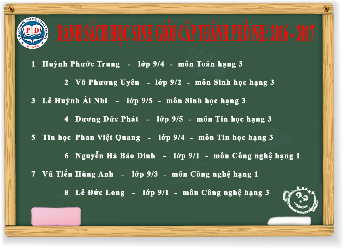 | DANH SÁCH HỌC SINH ĐẠT HỌC SINH GIỎI CẤP THÀNH PHỐ NH: 2016 - 2017 |